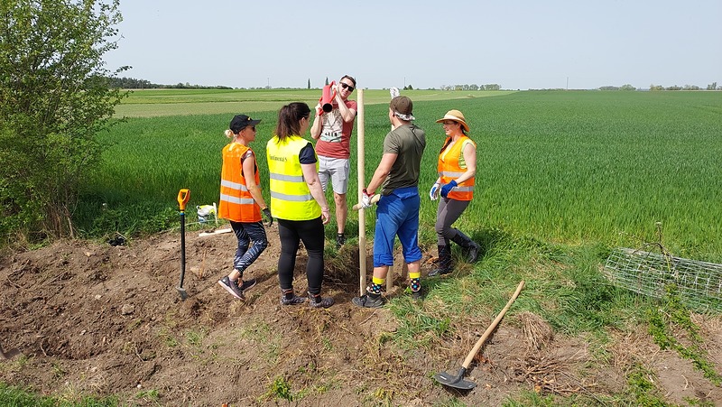 Před třetí hodinou již někteří dobrovolníci ztráceli ve vedru elán, ale protože chybělo zasadit posledních pár stromků, tak se po krátkém občerstvení pustili do práce a za chvíli bylo hotovo.