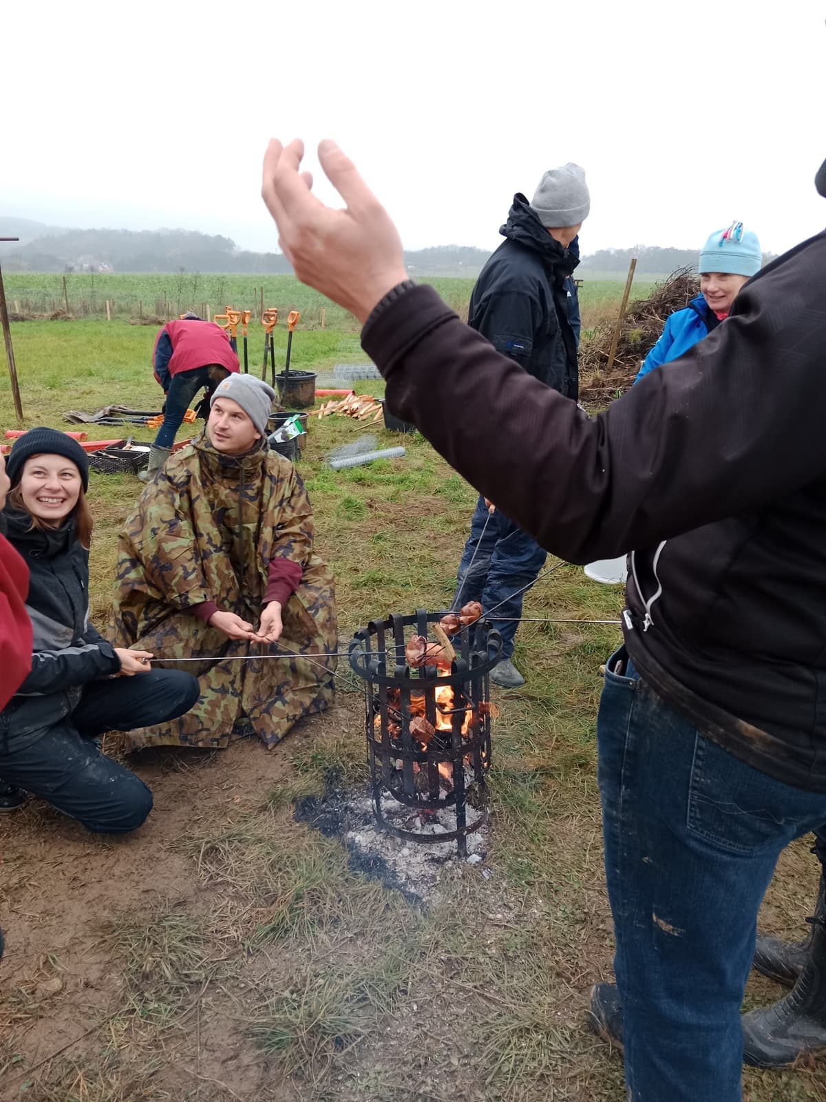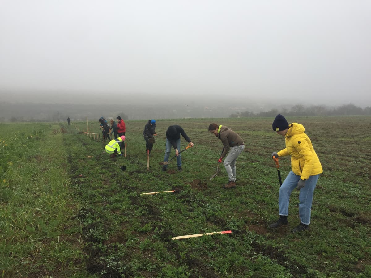 Členové a členky Činohry Národního divadla a 5 členů Hnutí Brontosaurus a místní obyvatelé s námi také sázeli. Byli vytrvalí, houževnatí a práce jim šla od ruky.
